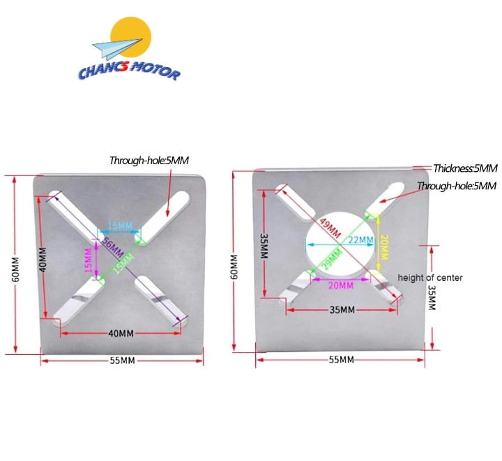 The size of the motor bracket: Vertical : 5mm thick, 60mm high, 55mm wide